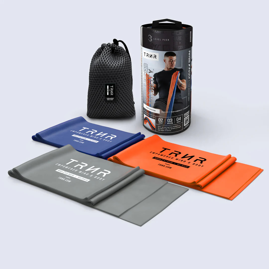 Including our three most popular levels - Light, Medium and Heavy, the TRNR Physio Bands 3 Pack was created for progressive training. Whether you wish to warm up, maintain muscle tone, or build upon existing strength for muscle mass gains, this pack has you covered. You may also want to use it when you need different levels of resistance to target specific muscles with more or less strength. It comes in a convenient mesh carry bag that you can take with you anywhere. But that's not all, you also get a poster and access to our free app to keep you motivated.