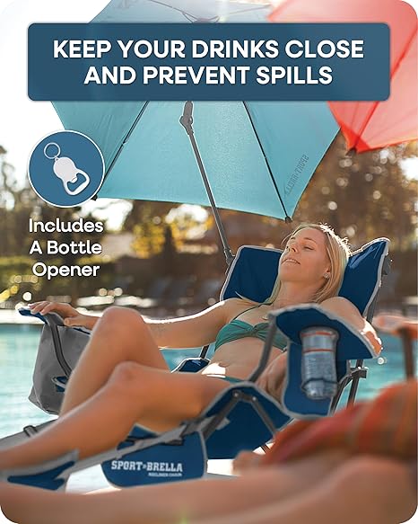 - SHADED RELAXATION: Enjoy shade and solar protection coverage thanks to this reclining beach chair's attached 3-way swiveling umbrella with UPF 50+ material and protective safety tips.