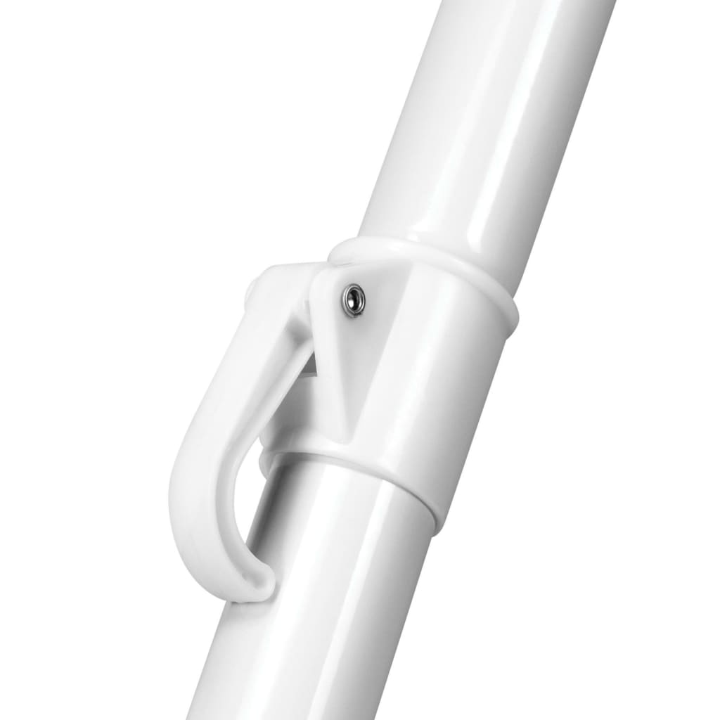 The durable telescoping aluminium centre pole has a built-in auger tip to anchor into most outdoor surfaces easily. It is also equipped with a tilting pivot and easily adjusts for maximum protection. The dual canopy allows for air to pass through and improves stability.