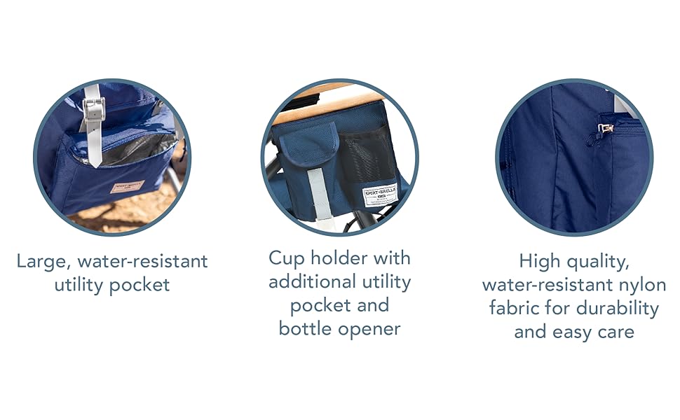 - Large storage compartment with water-resistant utility pocket; cup holder with utility pocket and bottle opener