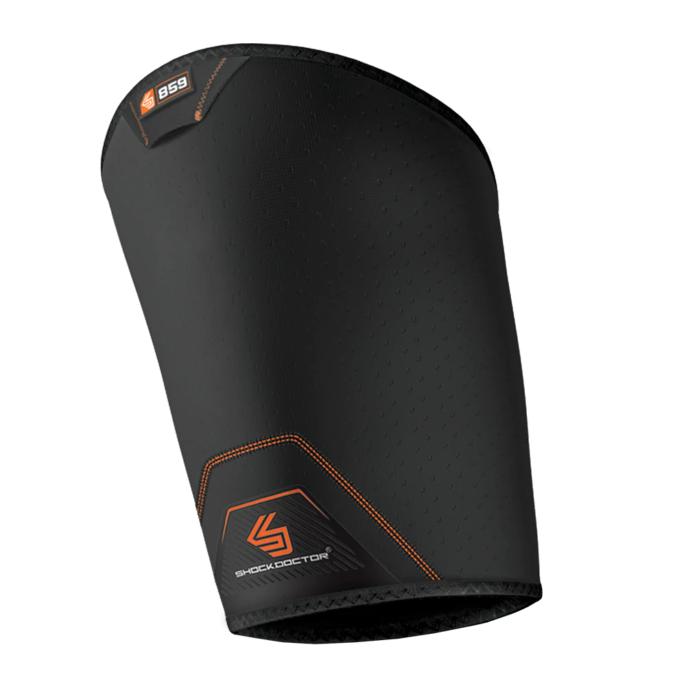 The Shock Doctor Thigh-Groin Compression Sleeve provides compression, comfort, therapeutic warmth and healing. Stays in place to keep you concentrated on your game.